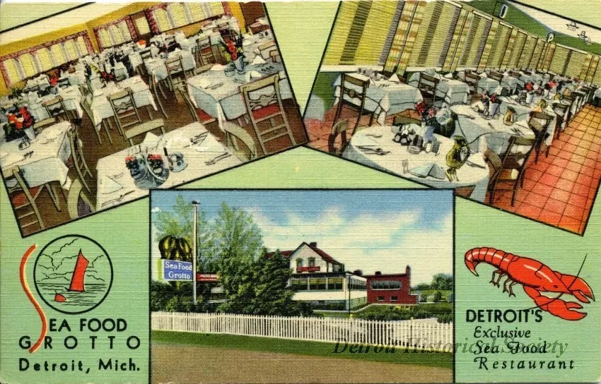 Printed on verso: Sea Food Grotto; Detroit's exclusive Sea Food Restaurant where good food and good people meet. West Seven Mile Rd. at telegraph; Detroit 19, Mich.