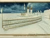 Color embossed postcard depicting the TASHMOO docked in Detroit with many people on deck.