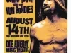 Screen printed promotional poster, designed by Mark Arminski, for the August 14, 2003 Iggy and the Stooges reunion concert at the DTE Energy Music Theatre with opening acts Sonic Youth and the Von Bondies. Due to the blackout that day which effected much of the northeastern United States, and parts of Canada, the concert was rescheduled for August 25, 2003. Iggy Pop is pictured in black, purple and yellow along the right edge of the poster.