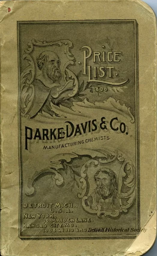 Request ImageComplete catalog of Parke, Davis & Co. products, revised to September 1, 1896. Hippocrates and Galen are featured on the front cover.