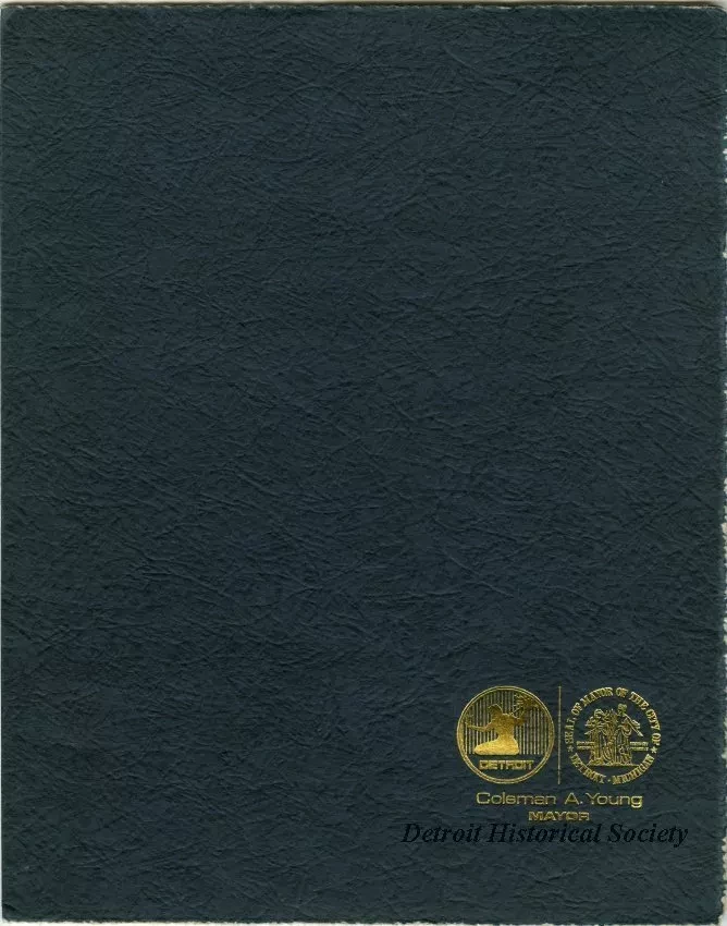The gold seal of the Mayor of the City of Detroit is affixed to the bottom left. The proclamation is stored inside a blue Coleman A. Young folder and is affixed to a gold background.