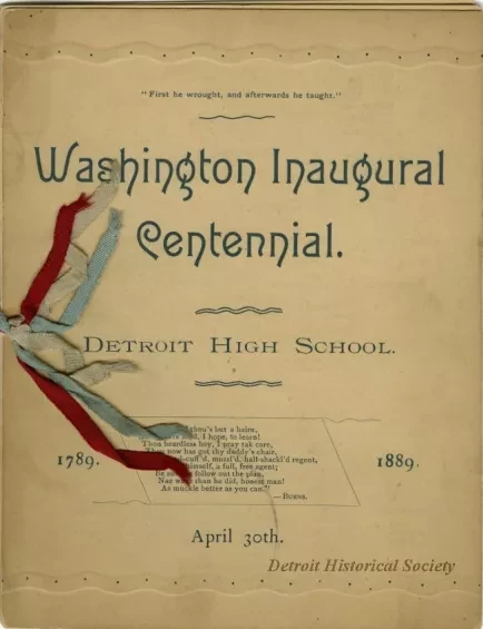 Program from the Washington Inaugural Centennial held April 30, 1889 at Detroit High School.