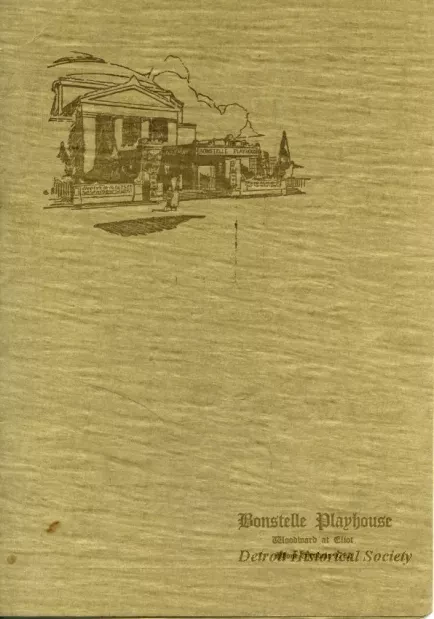 Program for "The Best People," the inaugural performance at the Bonstelle Theatre, beginning Thursday, January 1, 1925; brown stock cover features illustration of Bonstelle Playhouse with several people standing in front at the top in black; "Bonstelle Playhouse, Woodward at Elliot, Phone Glendale 9792" in black at bottom right