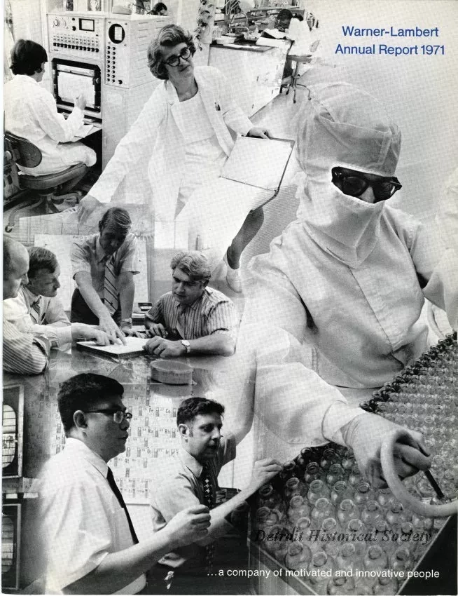 Warner-Lambert Annual Report for the year 1971. Contains the following sections: Professional Products; Consumer Products; Optical, Safety, Medical/Scientific Instrument Products; International; Research and Development; Financial Review; Facts About Warner-Lambert. Includes black and white photos.