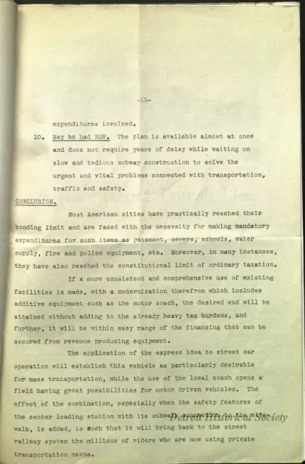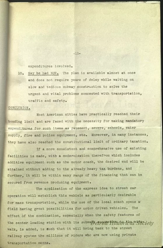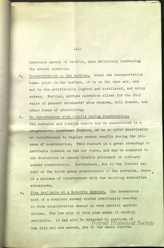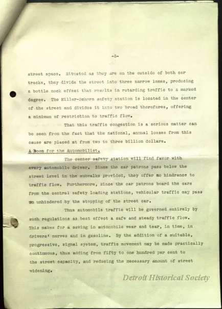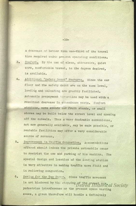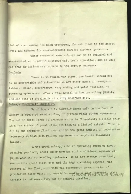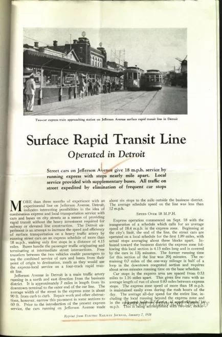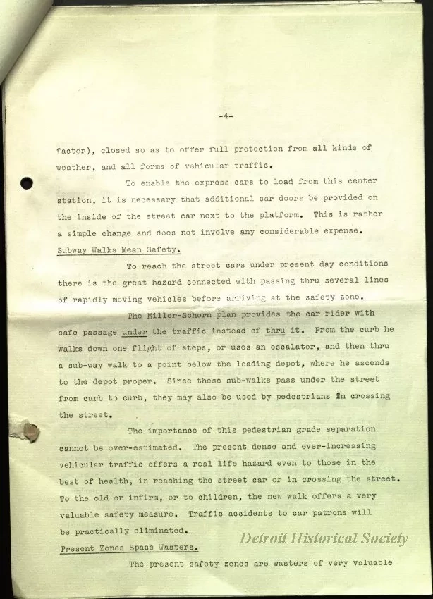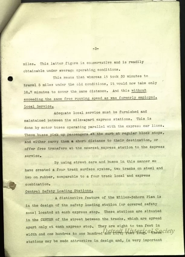 One report entitled "A New System of Surface Rapid Transit." The softcover report has a tan cover and contains 12 typewritten pages that discuss the "Miller-Schorn Rapid Transit System." Included at the back of the report is a reprint of a 4-page article from the "Electric Railway Journal" of January, 1928, which discusses rapid transit in Detroit and gives details and conceptual drawings of the proposed Miller-Schorn plan.