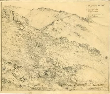 Drawing of part of a Champion Spark Plug Co. mine in California or Nevada.
