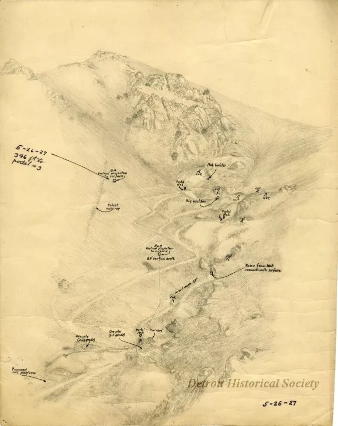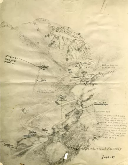 Drawing of part of a Champion Spark Plug Co. mine in Pershing County, Nevada.
