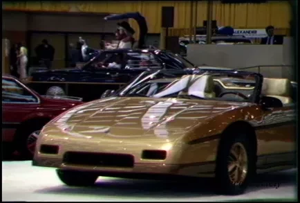 The tape begins with a short clip from a television soap opera followed by a short gap of blank tape. The auto show footage eventually begins with a series of shots of Cadillacs, including the Coupe De Ville and the Fleetwood Brougham. The camera then pans around the Chrysler Plymouth area, coming to rest on the Chrysler New Yorker display. Next the camera is driven around the floor, past the Pontiac section, in a motorized cart. The camera then pans across the Ford area, to the Pontiac area, ending with a zoom in on the Fiero convertible concept car. After another shot overlooking the Pontiac area, the camera moves to the Chrysler Laser display. The Ford Thunderbird is then is briefly filmed. The camera also zooms in on a display of two cartoonish figures seated inside of a similarly proportioned antique Dodge. Several other shots follow containing zooms through the Buick, Jeep/AMC/Renault, and Cadillac displays, and close-ups of the signage for Toyota, Porsche, Audi, and Honda. The Volkswagen Jetta display, the Cadillac Seville, and the Honda Civic are featured in the tape's final shots.