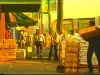 The tape opens with a shot of an Eaddy's Fresh Fruits-Veg. truck with Jiminy Cricket painted on its side, parked in front of the cow mural above the entrance to Shed 2. From the truck, the camera then pans to face first northwest, then southeast along the sidewalk on the southwest side of Russell Street. Here a workers are stacking and moving boxes for delivery trucks.