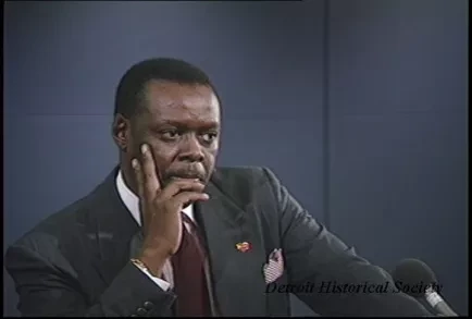 U-Matic S tape containing footage shot at the February 8, 1993 press conference announcing the latest statistics on major crimes in the city. The press conference is hosted by Charlie Williams, the Chief Executive Assistant to Mayor Coleman A. Young, who stands in for the absent mayor. Williams, Chief Stanley Knox, Executive Deputy Chief James Bannon, and Inspector Benny Napoleon all address the audience during the course of the event. The press conference is followed by brief footage from a speech given by an unidentified man about the economic problems facing cities and their residents.