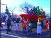 A Michigan Bell-sponsored float, in the shape of a large sled holding a basket of bells is then filmed. Several clowns and other costumed characters march along with the float. A group of people in flower and bee costumes march ahead of the AAA float. The AAA float represents Boblo Island, and features rollercoaster cars, and a miniature Ferris wheel. Boblo's mascots Bobbie the bear and Louie the lion ride in the front car of the rollercoaster.