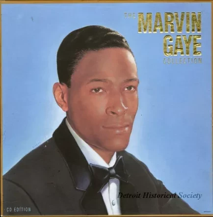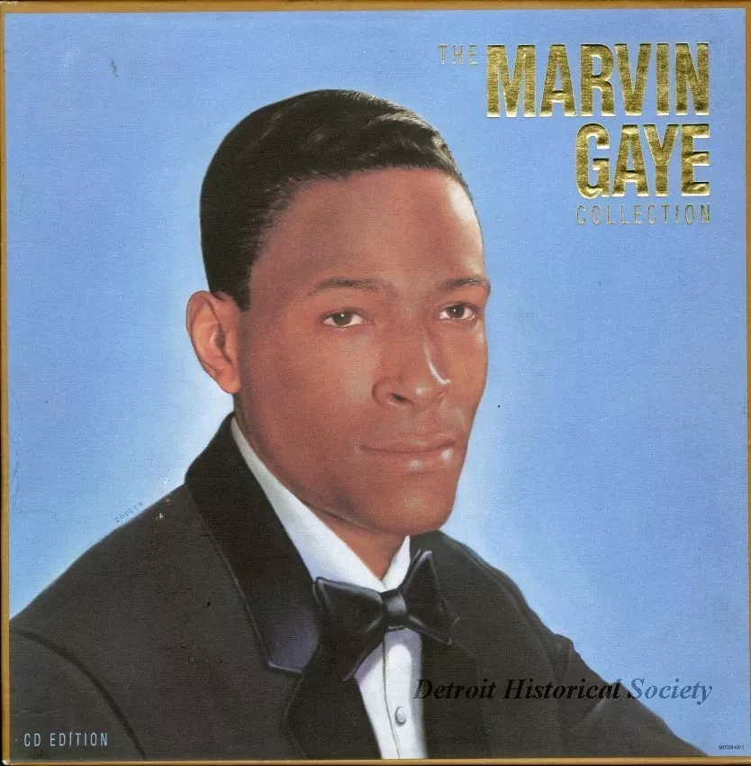 "The Marvin Gaye Collection," released by Motown Records in 1990. Features four compact discs of differing compilations, they include, "Volume One: 20 Top 20's;" Volume Two: The Duets;" "Volume Three: Rare, Live and Unreleased;" and "Volume Four: The Balladeer." Popular tracks include, "How Sweet It Is (To Be Loved By You), "Can I Get A Witness," "Let's Get It On," "Sexual Healing" and "I Heard It Through the Grapevine." The compilation set features the portrait of a young Marvin Gaye, dressed in tuxedo, with a blue background. Featured on the verso of the boxed set is an complete listing of the individual tracks, and a photographic image of Gaye