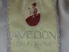 Yellow and orange artificial flower with lime leaves both made of tulle on left front. Pinkish-tan satin lining. Hand finished. Label: Avedon, Fifth Avenue, New York.