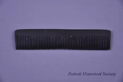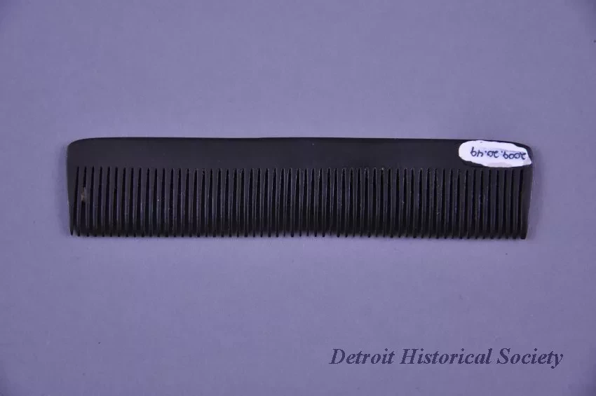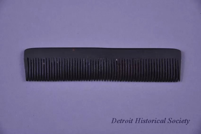 Comb. Hard rubber; very dark brown, almost black; no markings; recovered from wreck of the schooner ALVIN CLARK, which foundered in Lake Michigan 1864.