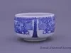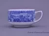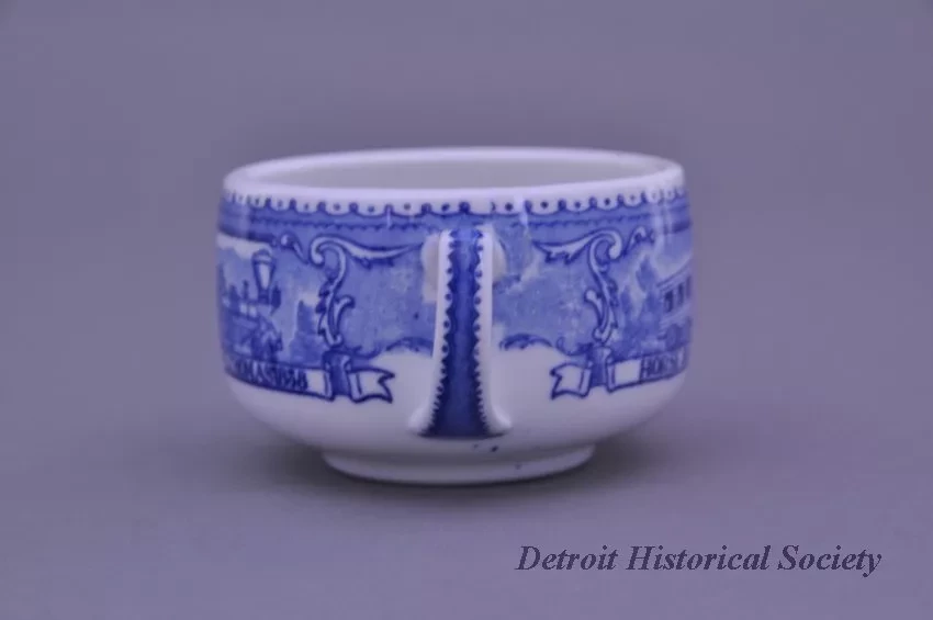 This collection of blue and white china was used in the dining cars of the Baltimore and Ohio Railroad during the 100th anniversary of the founding of the line. The china is styled in the manner of the Old Staffordshire China.