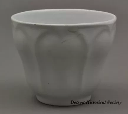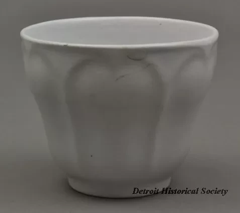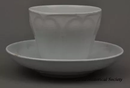 Cup: white ceramic teacup designed without handles; scalloped design in low relief around circumference; no maker's mark; has a matched saucer (object 2009.020.028.b); recovered from wreck of the schooner ALVIN CLARK, which foundered in Lake Michigan in 1864.