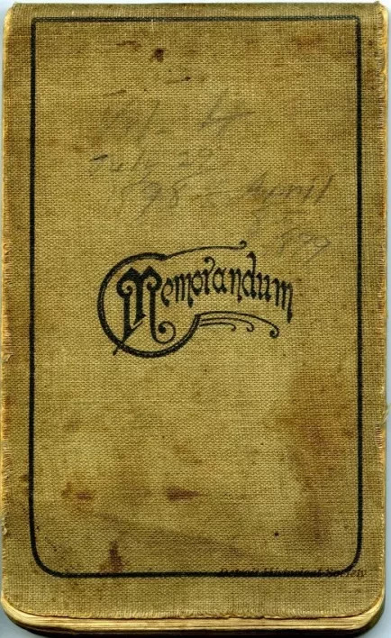 One "Memorandum" notebook with handwritten pencil text on the front cover and inside cover that shows "Vol. 4, July 29, 1898 - April 8, 1899" and "Sergt. A. [Alma] Lake, Co. L, 31st Mich. USV [U. S. Volunteers], [Fort Wayne, Detroit], Diary." The softcover notebook has a green cloth cover and contains daily handwritten pencil notes that begin with page 91, Friday, July 29, 1898, at Camp G. H. Thomas in Chickamauga, Georgia, and continue to page 279, Saturday, April 8, 1899.