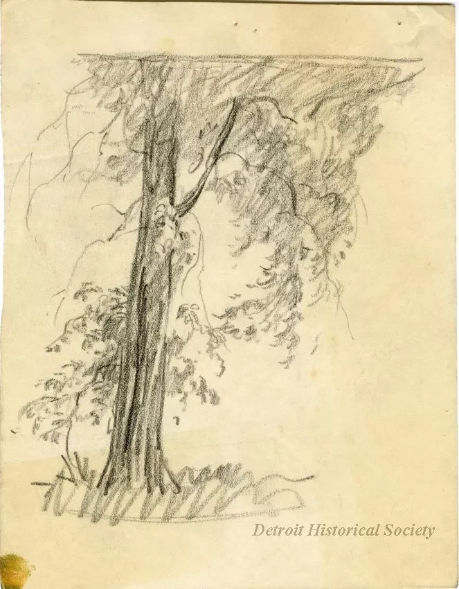 Click to enlarge 2014.002.233 Drawing Pencil sketch drawn by Charles E. Waltensperger on beige paper of a tree. Date c. 1920 Collection Art/Paintings/Sculpture Material paper Medium pencil Search Terms Art, Drawings People Waltensperger, Charles E. Creator Waltensperger, Charles E. Request Image