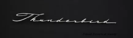Car Emblem. "Thunderbird" written in script. A triangular symbol containing the letters "T" and "C" appears on the reverse.