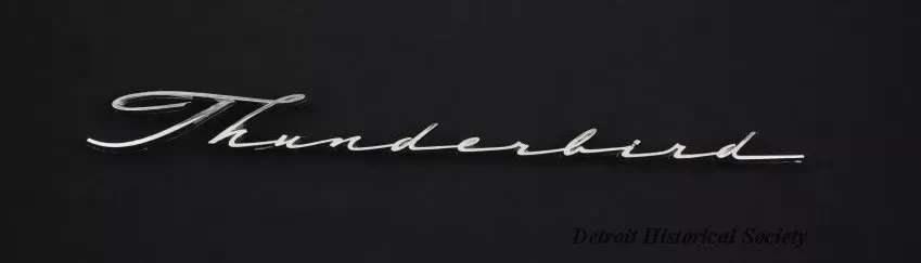 Request ImageCar Emblem. "Thunderbird" written in script. A triangular symbol containing the letters "T" and "C" appears on the reverse.