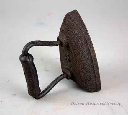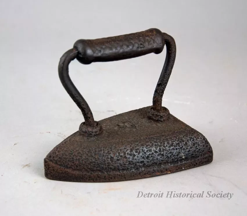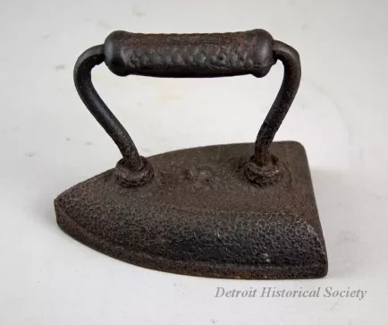 Request ImageOne flatiron made of cast iron. The cast iron handle has a lattice design on the grip and the number, "5," is shown on top of the base. No manufaturer's name is shown.