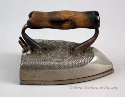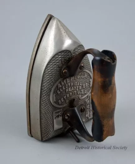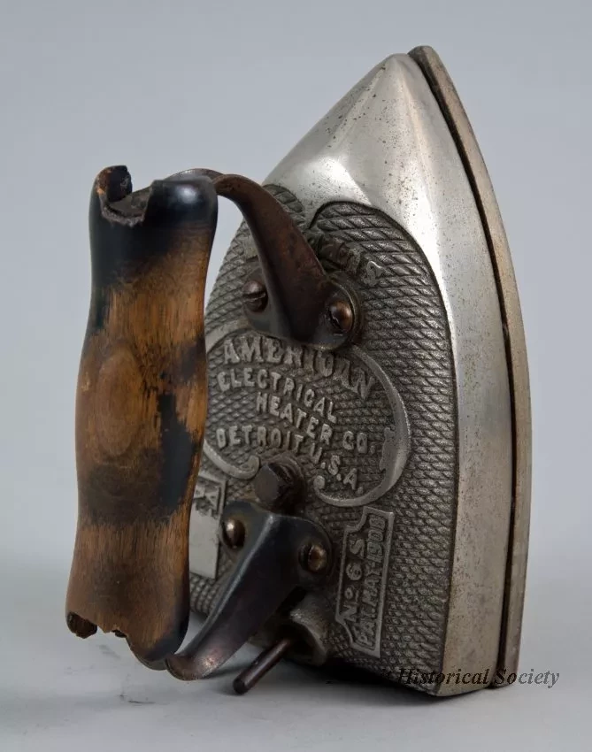 Iron: Iron base with wooden handle; Marked on base "American Electrical Heater Co., Detroit, U.S.A." as well as "No.6s, Pat. May 1908," and "Superior."