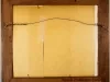 One framed lithograph entitled "Detroit River's Winter" by William A. Bostick. The charcoal and pencil drawing depicts a scene along the edge of the river in winter time. A snow-covered shoreline and dock are shown in the foreground with a railroad car ferry and city skyline in the background. The artist has signed his name, "Wm. A. Bostick," in the lower right corner. The print is mounted in a decorative walnut or cherry wood frame with a white matte border and protective glass. The wood frame has a multi-layered molding which has been stained dark brown and finished with clear semi-gloss lacquer or varnish.