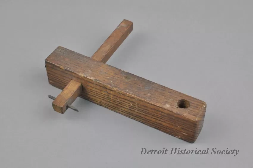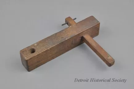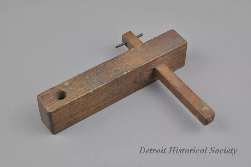 Request ImageMarking Gauge. Small marking gauge with a screw in one end for a lock and what appears to be a drill bit as the marking tool.