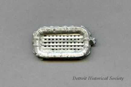 One cast lead model liferaft. The liferaft is unfinished and shows some mold marks. It is intended to be used as an accessory piece on a ship model. No manufacturer's marks are shown.