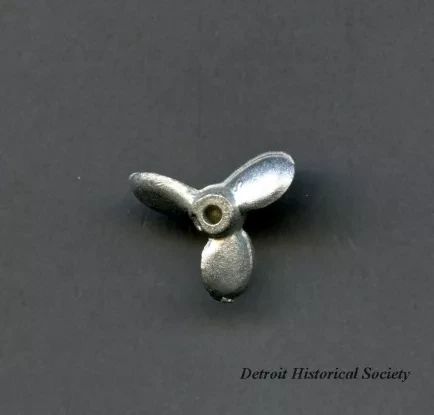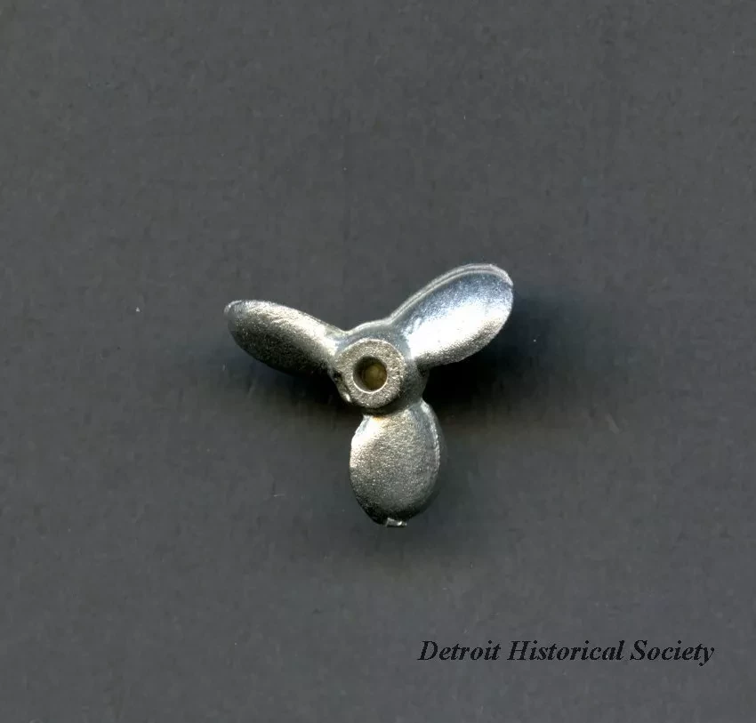 One cast lead model of a 3-blade propeller. The propeller is unfinished and shows some mold marks. It is intended to be used as an accessory piece on a ship model. No manufacturer's marks are shown.
