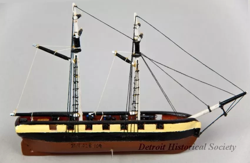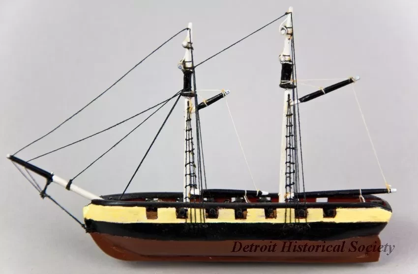 This model was part of a set of fifteen models which represented the ships (6 British and 9 American) that took part in the Battle of Lake Erie on September 10, 1813.