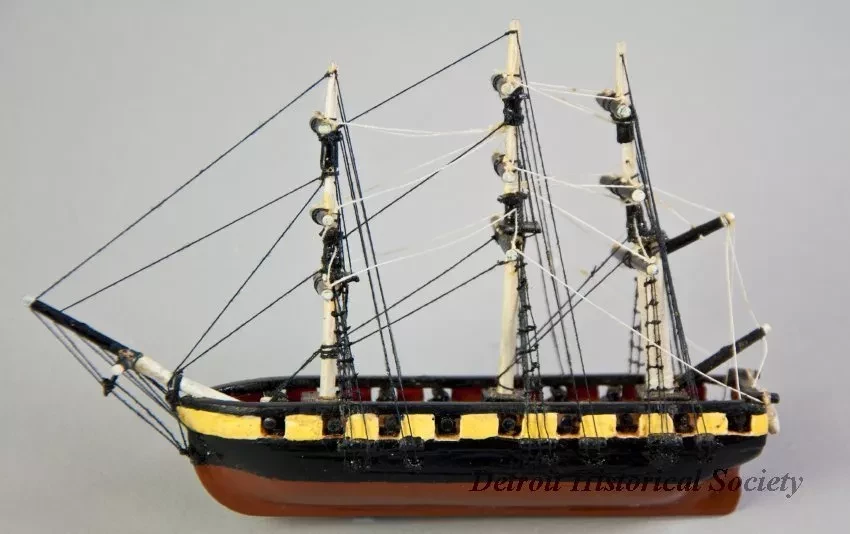 This model was part of a set of fifteen models which represented the ships (6 British and 9 American) that took part in the Battle of Lake Erie on September 10, 1813.