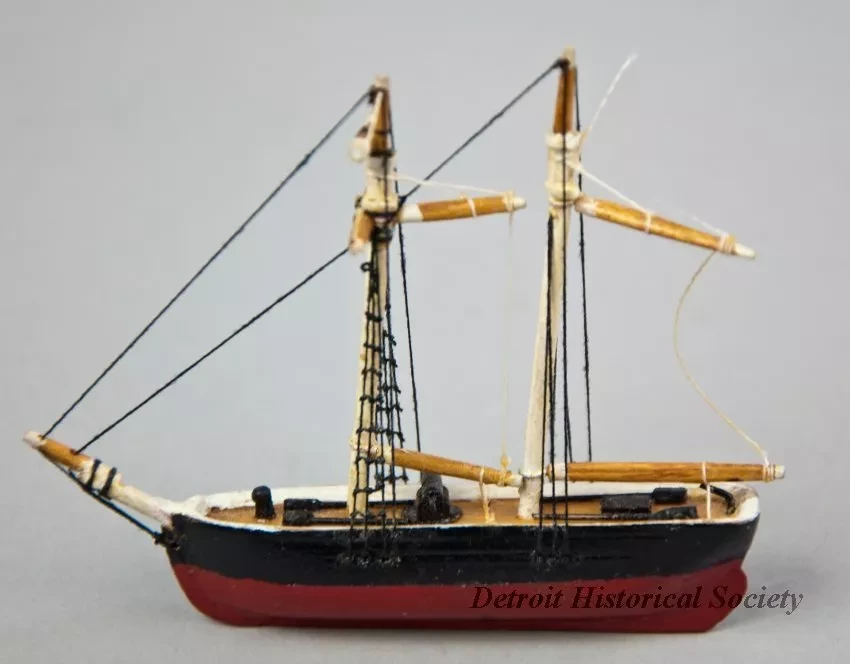 This model was part of a set of fifteen models which represented the ships (6 British and 9 American) that took part in the Battle of Lake Erie on September 10, 1813.