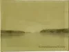 Small watercolor landscape painting by Frank C. Bracy, of a view between two of the Apostle Islands on Lake Superior. Three gulls fly over the water in the foreground. "Among the Apostle Islands, Lake Superior, July 19 '80," and "No. 17" are handwritten on the verso.