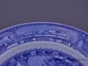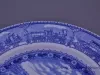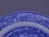 This collection of blue and white china was used in the dining cars of the Baltimore and Ohio Railroad during the 100th anniversary of the founding of the line. The china is styled in the manner of the Old Staffordshire China.
