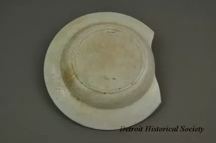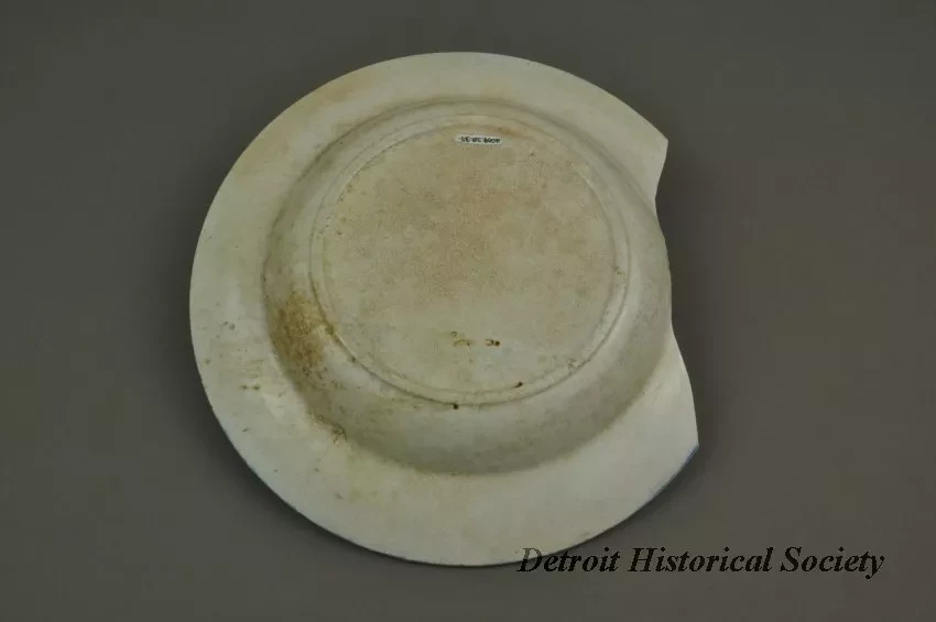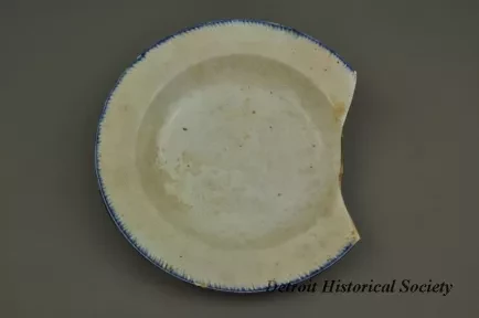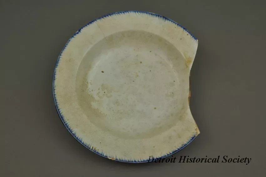 Plate: white ceramic with blue rim; no maker's mark; recovered from wreck of the schooner ALVIN CLARK, which foundered in 1864.