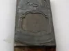 One engraving plate used for printing Vernor's advertisements, brochures, and/or product packaging. The rectangular plate is made from a thin sheet of zinc that has been mounted on a wood block with thirteen small nails. The plate has been cut and etched with a flat relief engraving and a halftone image that shows a bottle of Vernor's Ginger Ale. The label area of the bottle has been cut out which would allow different label designs to be added separately.