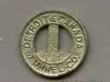 One token for passage through the Detroit Windsor tunnel. The circular, coin-like token is stamped from a lightweight, silver-colored metal (possibly aluminum). The obverse has a decorative grid pattern along the perimeter with text that reads "Detroit & Canada Tunnel Co." The reverse has the same grid pattern with text that reads "Good For One Fare." Two areas near the center of the token have been cut away to form a stylized letter, "T."