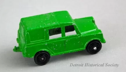 Toy Land Rover made of cast metal. Painted green. Marked: Tootsietoy - USA, 2-land rover.