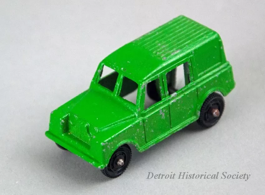 Request ImageToy Land Rover made of cast metal. Painted green. Marked: Tootsietoy - USA, 2-land rover.