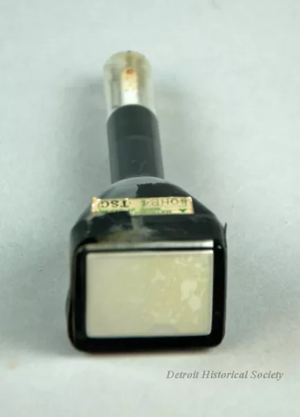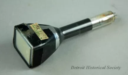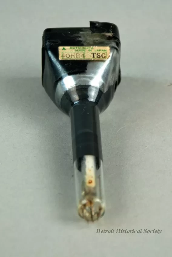 One Vidicon cathode ray tube, model number 40HB4, made by Matsushita Electric Industrial Company, Ltd., of Japan. The small television display tube is made of glass and metal. It contains an assembly of precision-made parts and was used in a television camera.