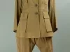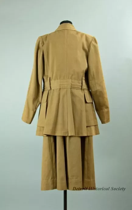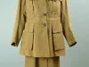 The jacket would have been worn with either the skirt or the puttees. No manufacturer's labels are shown on any of the pieces. One small label on the inside right armhole of the jacket shows "7911-T" and "BRAD."
