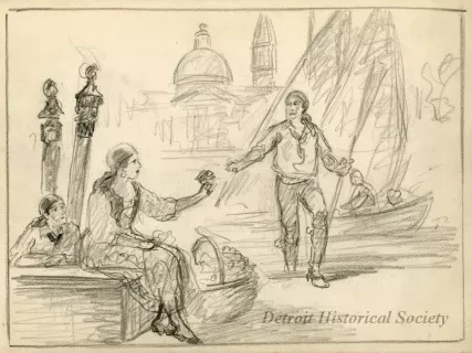 Studied under Joseph Gies at the old Detroit Museum of Art school.