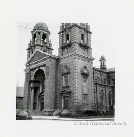 Request ImageBlack & white photographic print depicting St. Francis D'Assisi Catholic Church on the northeast corner of Wesson and Buchanan Streets.
