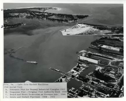 "Erie, Pa. - Lake Erie Harbor Facilities, 1964 Aerial View,