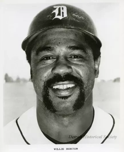 Black and white photographic print depicting Willie Horton of the Detroit Tigers.