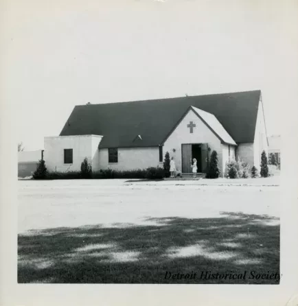 Black & white photo depicting Northwest Trinity Lutheran Church on the southeast corner of St. Martins Avenue and Marlowe Street.