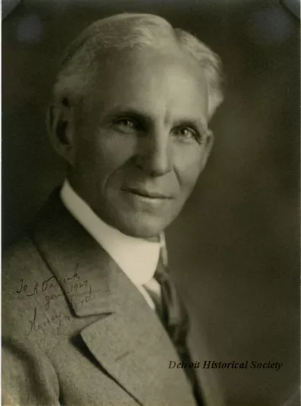 Black & white portrait photo of Henry Ford. Features his signature addressed to Alfred O. Dunk and dated June 1927.