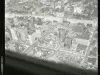 Black and white aerial photograph cut from a proof sheet taken of downtown from Grand Circus Park north to Henry Street and Winder Street, taken from a point above Madison Street facing west. Cass Avenue, Clifford Street, Park Avenue, Woodward Avenue, Witherell Street, and John R Street run diagonally through the photo. The top of the David Broderick Tower, the Fyfe Building, the Fine Arts Building, the Kales Building, Central United Methodist Church, the Palms Theatre, the Fox Theatre, the Wolverine Hotel, the YMCA, St. John's Episcopal Church, I-75, and the Donovan Building are all in view. Part of the photographer's plane is captured along the bottom of the image. "City of Detroit, Report & Information, 72101, Photographic," was stamped on the verso of the proof sheet, however the final digit was hand-corrected to "2."