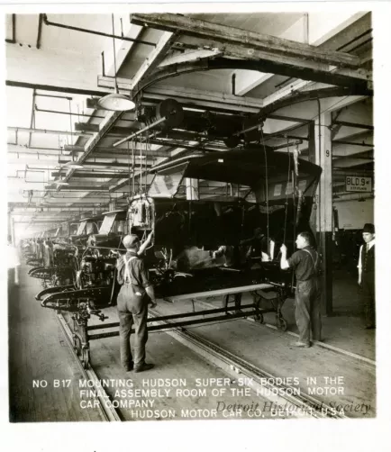 Mounting Hudson Super-Six Bodies In The Final Assembly Room Of The Hudson Motor Car Company, Hudson Motor Car Co, Detroit, USA